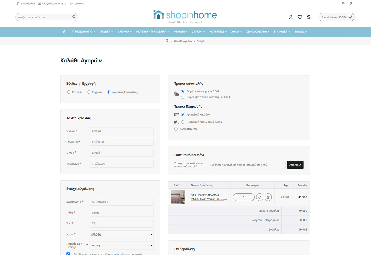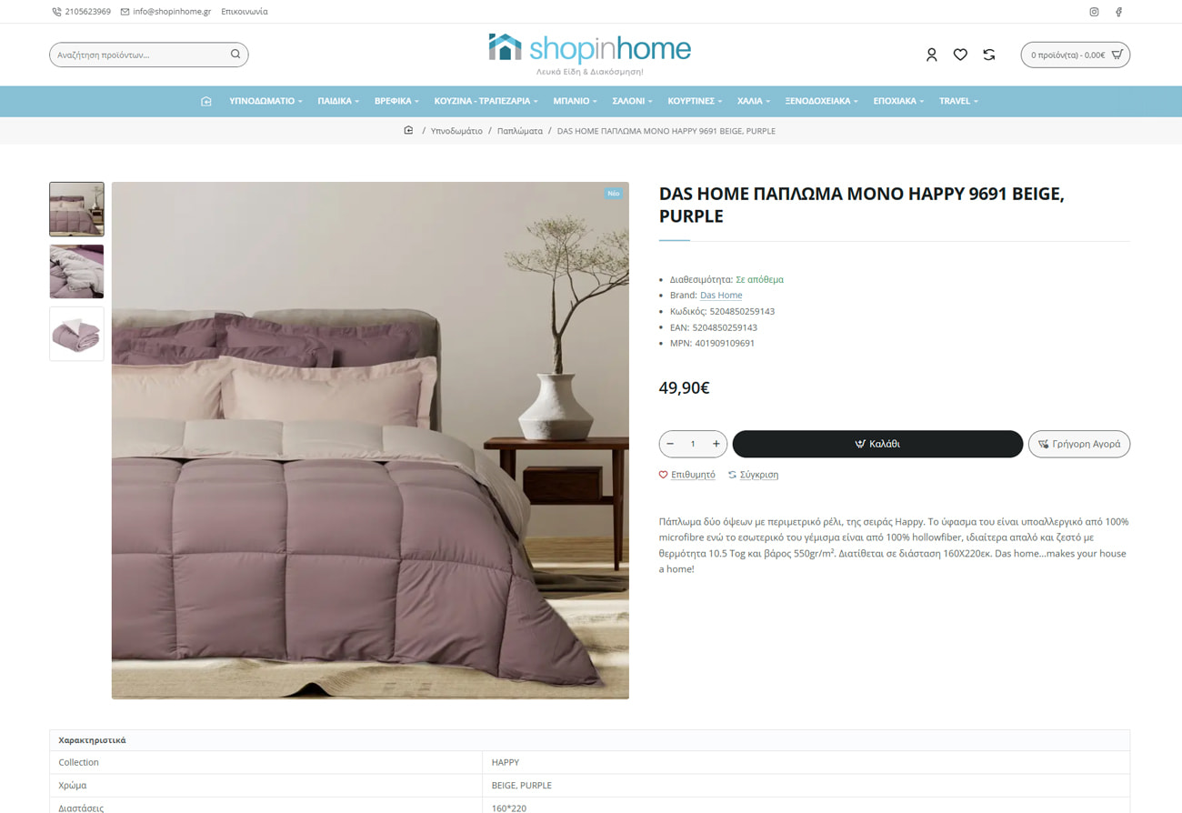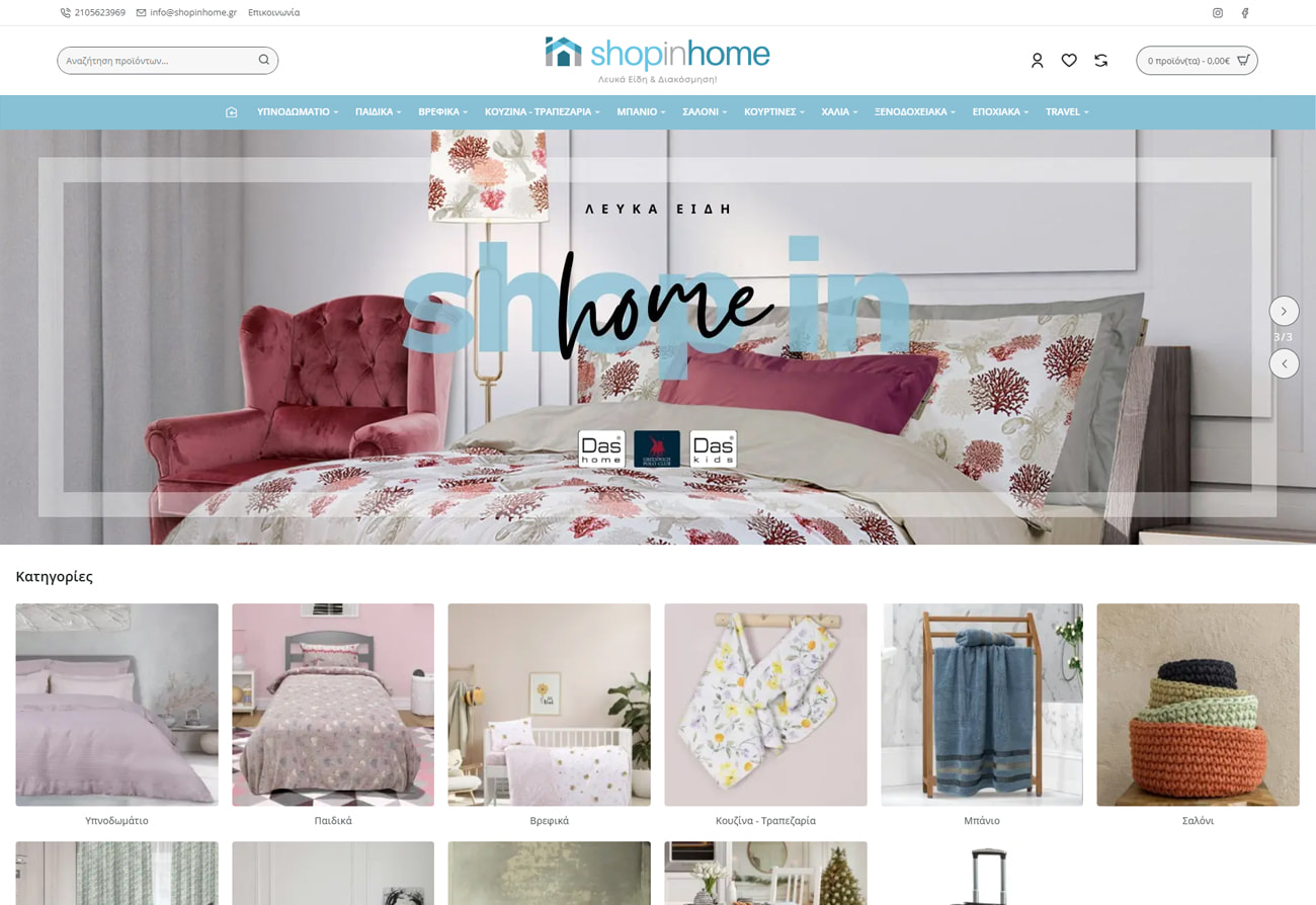 We undertook the design and development of the new ShopInHome e-shop. Our goal was to create a clean shopping experience with simple, clear navigation. We organized the structure into distinct sections for quick access to all products. We added smart filters and a search function that returns useful results without extra steps. We optimized the cart and checkout for fewer clicks and a smooth order completion. We ensured full compatibility with mobile devices and tablets through responsive design. We focused on loading speed so that pages open instantly. We used clean photos and descriptions for a clear presentation of each product.
